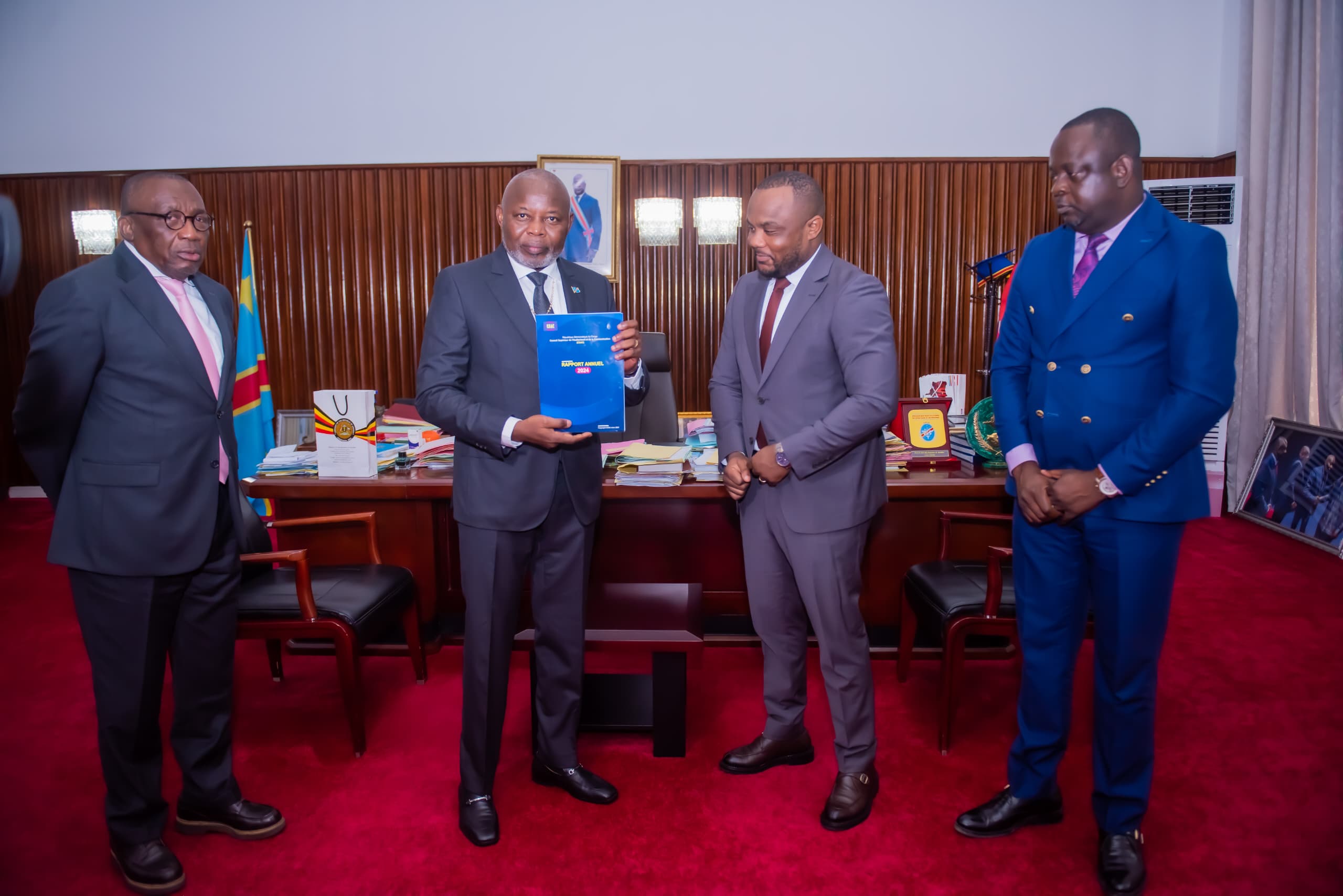 Le Président de l’Assemblée Nationale, Vital Kamerhe, a reçu en audience, le mercredi 28 Mai 2025, le Président du Conseil Supérieur de l’Audiovisuel et de la Communication (CSAC). Christian Bosembe etait venu remettre au Speaker de la Chambre basse du Parlement qui était accompagné du Rapporteur Jacques Djoli, le rapport annuel 2024 de cette Institution d’appui à la démocratie.