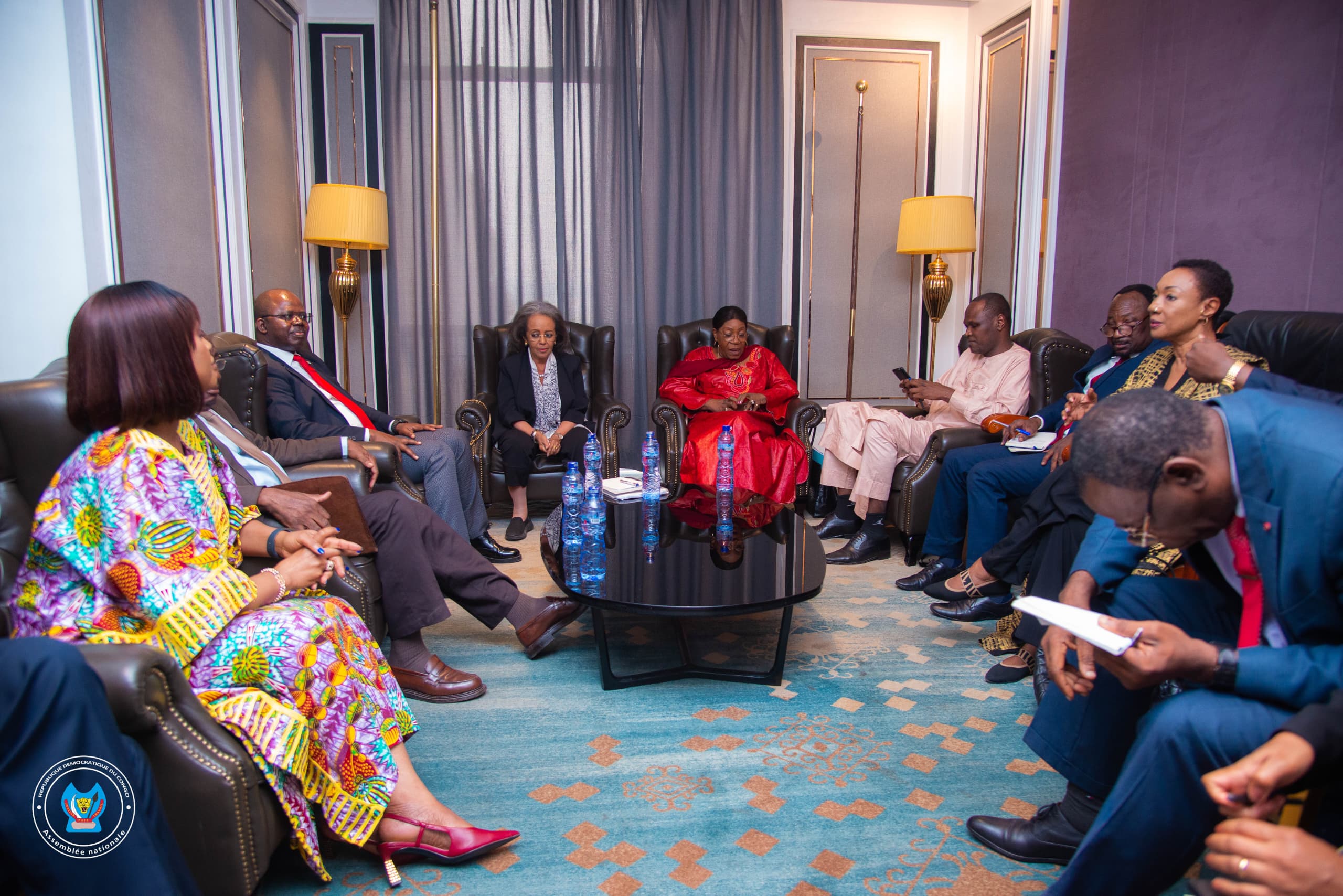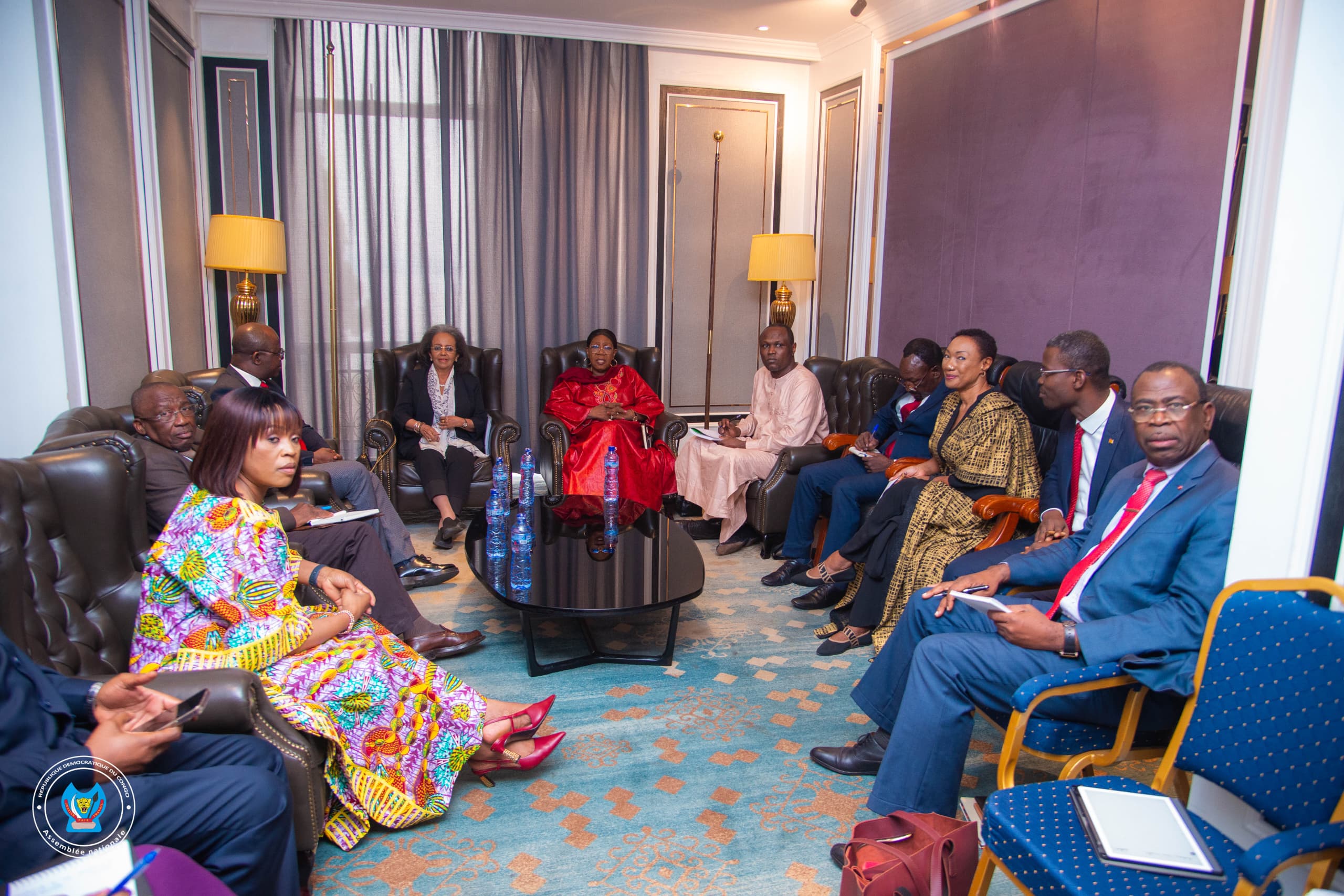 Sous la conduite du premier vice-président, Isaac Jean-Claude TSHILUMBAYI MUSAWU accompagné des Honorables Jacques DJOLI ESENG’EKELI et Grâce NEEMA PAININYE, Respectivement Rapporteur et Questeure adjointe, le bureau de la représentation nationale a discuté avec cette équipe dirigée par Catherine SAMBA PANZA, ex-présidente Centrafricaine et SAHLE WORK-ZEWDE, ancienne présidente éthiopienne sur la situation en RDC.