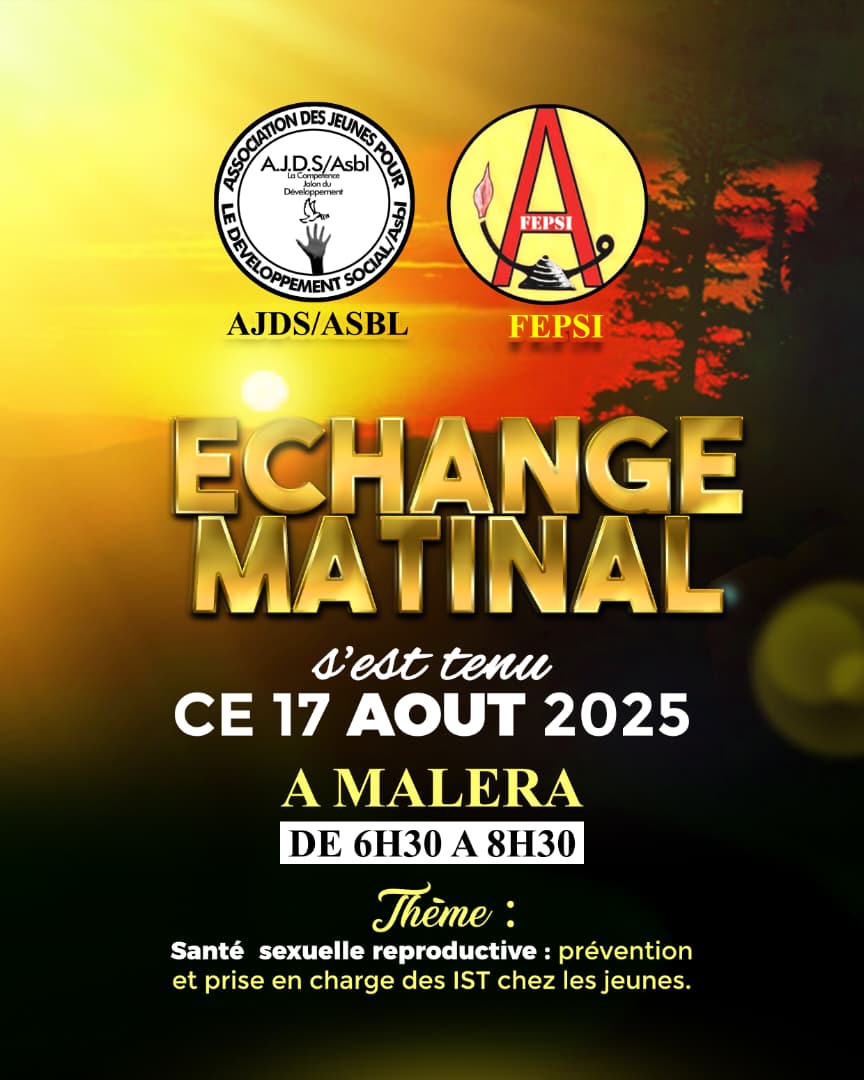 Les jeunes faisant partie de l’Association des Jeunes pour le Développement Social (AJDS) évoluant à Malera en commune Boulengera dans la ville de Butembo ont bénéficié ce dimanche 17 août 2025 d’une formation centrée sur la Santé sexuelle et reproductive.