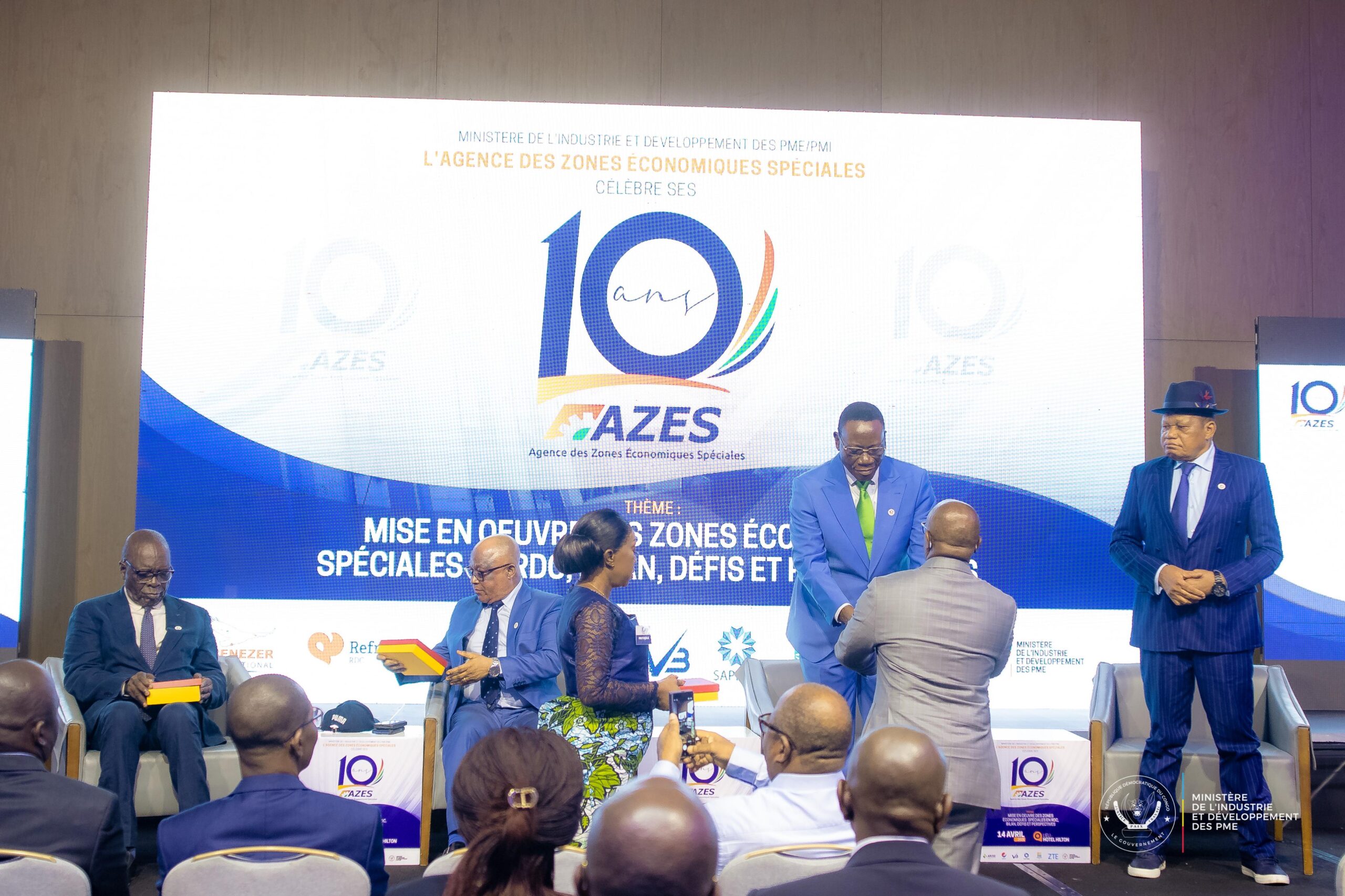Ce lundi 14 avril 2025, l’Agence des Zones Économiques Spéciales (AZES) a célébré ses dix ans d’existence lors d’une cérémonie organisée à l’Hôtel Hilton de Kinshasa. L’événement s’est tenu sous le patronage du Ministre de l’Industrie et du Développement des PME, Louis Watum Kabamba, en droite ligne avec la vision du Chef de l’État Félix Antoine Tshisekedi Tshilombo, et sous la coordination de la Première ministre Judith Suminwa Tuluka.