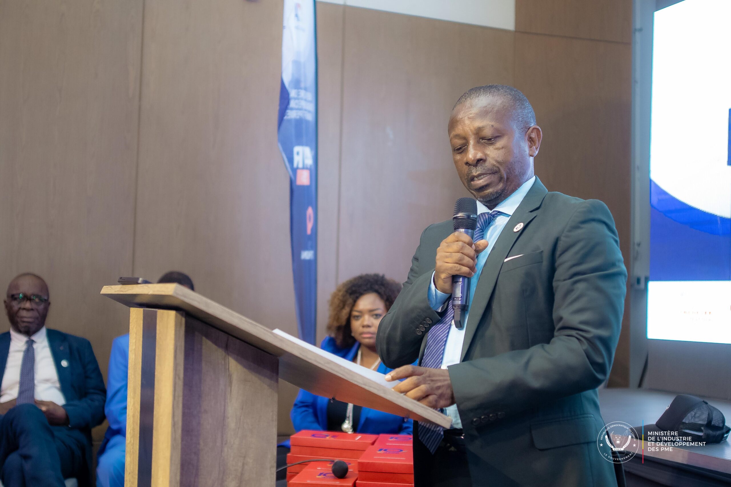 Représentant le Ministre Louis Watum Kabamba, son directeur de cabinet, Clément Muchengezi, a souligné l’engagement constant du Président de la République pour le développement industriel, malgré les défis sécuritaires persistants dans l’Est du pays.