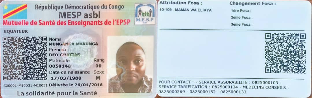 Qui sont éligibles pour la carte de la MESP ?« Les enseignants de l’EPST du secteur public reconnu par le service de calcul de la paie des enseignants (SECOPE). La couverture médicale s’étend aux administratifs de même secteur. En dehors de ces derniers, les personnes qui seront en charge, PAC de ses derniers, sont l’époux ou épouse et trois enfants dont l’ouverture aux soins est conditionnée par la présentation de documents ci-après : l’acte de mariage pour l’époux(e), les actes de naissance ou d’adoption pour les enfants de 0 à 17 ans ainsi que les preuves de scolarité (carte d’élève ou d’étudiant, les attestations scolaires) pour ceux de 18 à 24 ans. Si un enseignant s’est marié à une enseignante, le nombre d’enfants pris en charge est doublé soit six enfants format aussi un couple dit « XXL ».Quelques participants avaient posés des questions pertinentes quant-à ce, puis les réponses satisfaisantes les ont été données, avant la fin de cette rencontre sanctionnée par l’hymne national de la RDC.