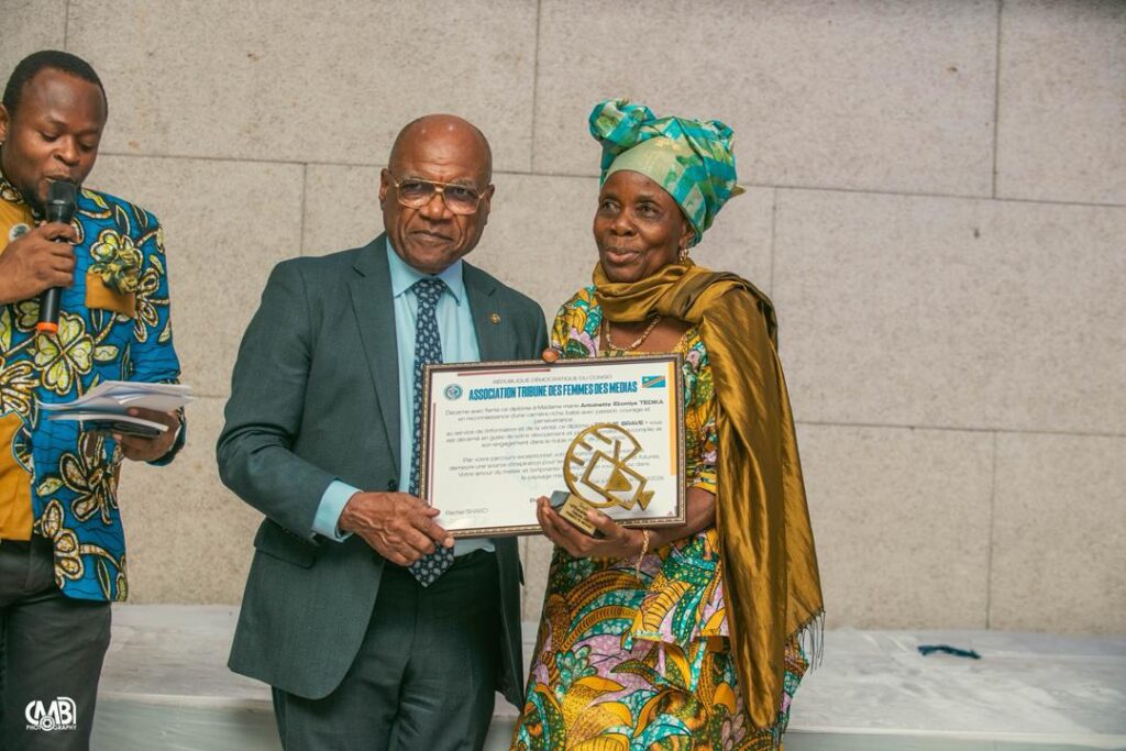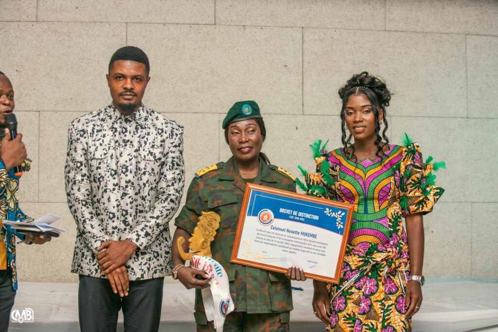 Ont également été honorées une agente de régulation de la circulation, communément appelée « maman roulage », en poste à Kabinda Huilerie, pour son engagement sur la voie publique ; Mme Ekomiya Tedika, ancienne journaliste, aujourd’hui promotrice de la culture à travers le pagne et les langues nationales ; ainsi que Virginie Ambassa, présidente d’une fondation spécialisée dans la valorisation de la beauté naturelle à base de produits locaux.