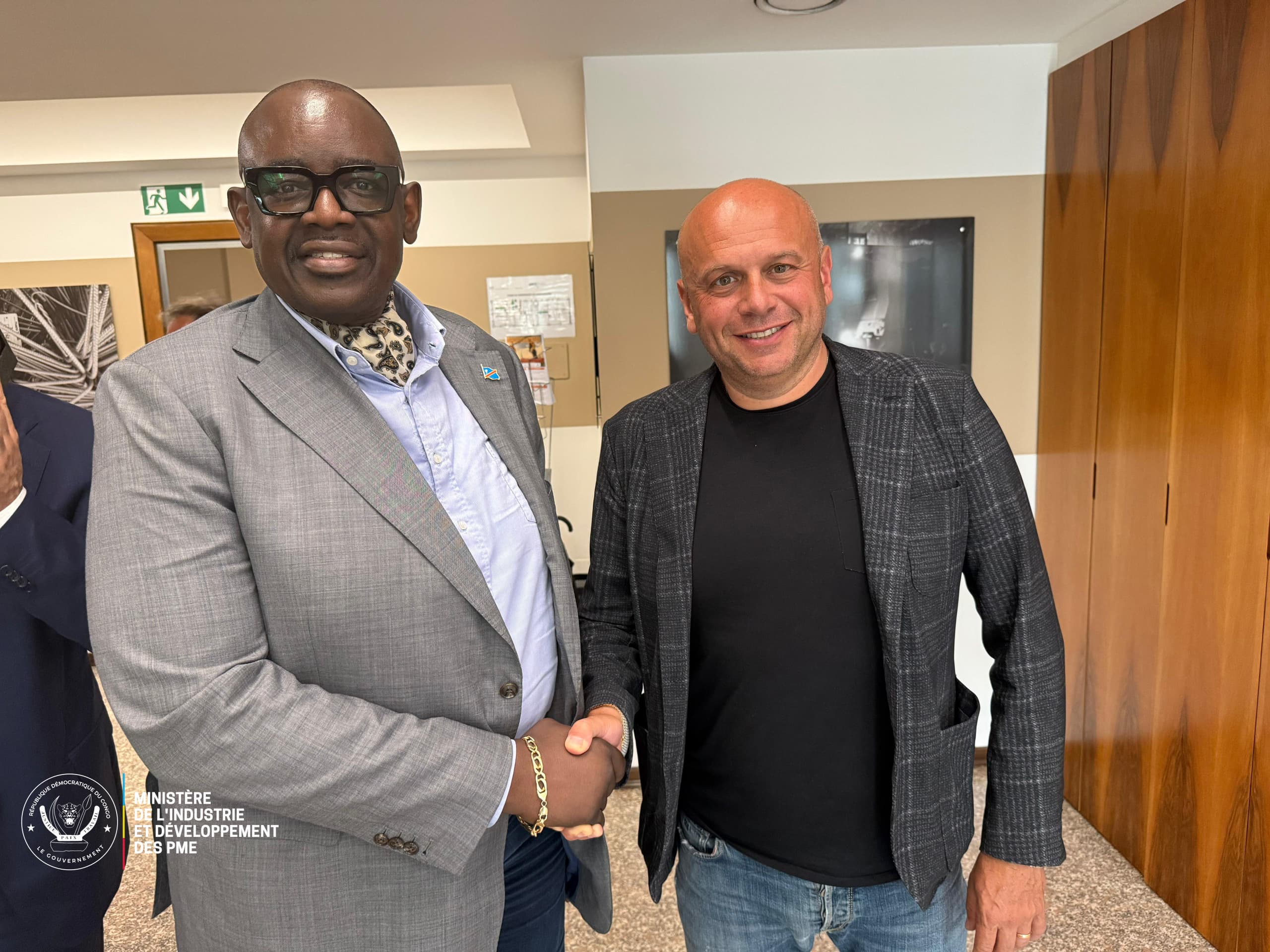 Dans le cadre de la diplomatie économique prônée par son Excellence Félix Antoine Tshisekedi Tshilombo, Président de la République Démocratique du Congo, et sous la coordination éclairée de la Première Ministre Judith Suminwa Tuluka, le Ministre de l’Industrie et du Développement des PME, Louis Watum Kabamba, est en mission officielle en Italie. Objectif : renforcer les partenariats économiques, industriels et technologiques au bénéfice du développement congolais.Premier arrêt : l’usine de fabrication artisanale de verre, symbole de précision et de transmission du savoir-faire. Le Ministre Watum s’est imprégné des techniques utilisées par les artisans italiens, dans l’optique d’adapter ces expertises au contexte congolais, notamment dans les métiers d’art et la valorisation du verre local.La délégation a ensuite visité l’industrie agroalimentaire de pointe. Cette étape a permis d’identifier des solutions concrètes pour la transformation locale des produits agricoles en RDC, dans une logique de souveraineté alimentaire et de création de valeur ajoutée.Le Ministre Watum Kabamba a rencontré plusieurs entrepreneurs italiens actifs dans les secteurs de la santé, de l’agriculture, de la formation professionnelle, des technologies digitales et de l’énergie. Des échanges riches en perspectives pour des partenariats innovants.Moment historique : Au prestigieux Palazzo Ducale, le Ministre a signé un protocole d’accord avec La Fédération Italienne des organismes de formation et d’orientation professionnelle (FEDERFORMAZIONE) représentée par sa Présidente, Prof Laura Mazza. Ce mémorandum ambitieux s’articule autour de quatre axes clés :