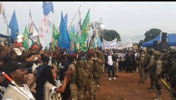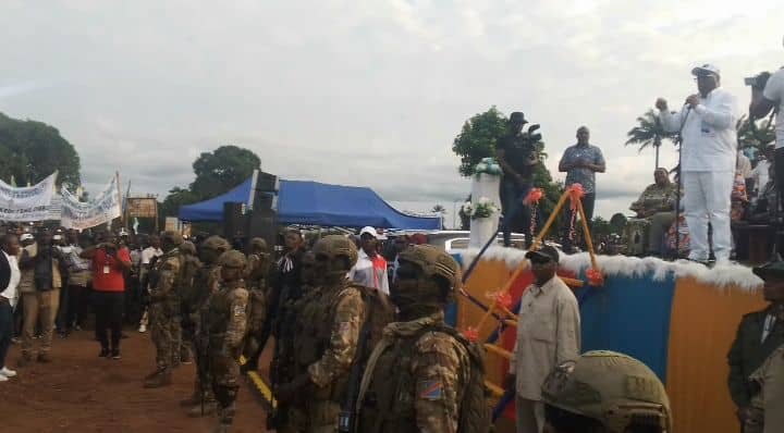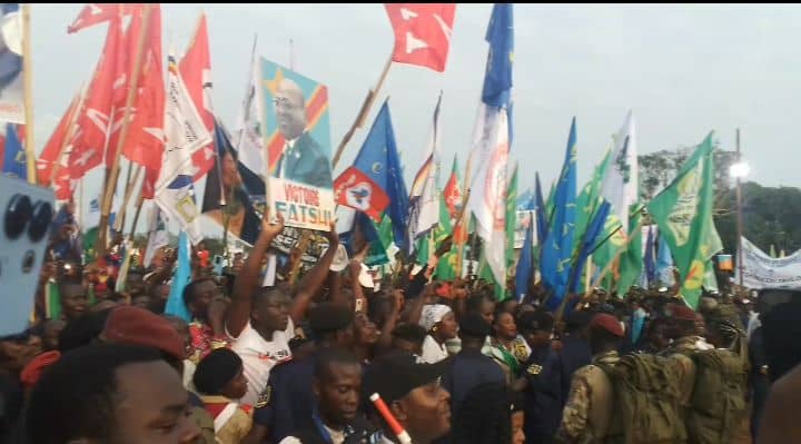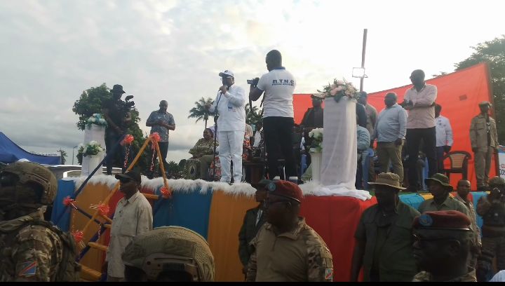 « Gbado-Lite oyeeeee ? ×2. Ah, je suis très joyeux de vous voir. Je suis très content puis vous remercie. On m’avait dit que oh non, Gbado-Lite, ils sont déjà morts, et j’ai vu que c’est de mensonges, car vous êtes en vie et forts. Je suis en joie car je suis venu vous voir pour ma campagne. Je sais que nous avons déjà commencé des travaux ici à Gbado-Lite et dans les territoires du Nord-Ubangi pour revêtir nos milieux des nouvelles robes datant. Gbado-Lite avait le goudron, courant et de l’eau, nos milieux avaient des routes, des écoles, des hôpitaux, et tous cela c’est ce que nous avons commencé à faire petit à petit pour que Gbado-Lite et les territoires soient encore éclairés. Je vous remercie pour votre présence et pour l’accueil. Nous sommes venus vous rencontrer ici pour vous dire de ne pas être en tristesse, je sais que vous étiez vraiment maltraités, je le sais, je sais qu’on vous avait donné un surnom (code 32), mais je viens vous annoncer que désormais, fini ces injustices, tout ça c’est fini, c’est parti dans l’eau. C’est pourquoi je vous demande mes très chers compatriotes, le jour du 20 décembre 2023, qu’il pleuve ou pas, que personne ne reste à la maison ; vous tous ensemble allez-vous dans les bureaux de vote, car les ennemis du Congo ne dorment pas, ils sont nombreux et parmi ces 26 candidats que je suis aussi, ils se sont transformés dans certaines personnes à cette bataille électorale. Leur travail c’est de venir tracer les jalons pour permettre aux ennemis du pays de revenir au pouvoir pour nous faire souffrir, de nous faire revenir sous l’esclavage (coloniser). Je vous demande de vous levez vous tous chacun avec sa carte d’électeur pour aller faire le choix. Est-ce que vous connaissez le numéro que vous voterez ? ×3. La foule répond Ouiiiiiii Numéro 20 sous acclamations. Poursuit-il, Voilà comme vous connaissez bien le numéro, ne dormez pas le jour du 20 décembre, ne suivez pas la météo, tous en route pour le vote. Car, c’est que nous faisons maintenant c’est pour la mort ou la vie du Congo. Comme je vous dis, peuple Congolais s’il se mobilise comme un seul homme, l’ennemi ne nous vaincra pas. Nous avons déjà commencé à construire notre pays. J’espère que vous avez l’information concernant ce vaste programme du projet 145 territoires, c’est un programme qui doit construire les routes, les écoles, les hôpitaux, les bureaux d’administration dans chaque chef-lieu du territoire, puis faire les travaux champêtres (d’agriculture). Nos frères cultivateurs, soyez déjà heureux, car nous allons ajouter des moyens pour faciliter la maximisation de vos productions afin de nourrir le Congo. Nous voulons vaincre ce fameux problème de la famine au Congo, car nous avons des terres arables, qui peuvent nous aider à produire des produits que nous importons et dont cette importation facilite la dépréciation de notre monnaie nationale (franc congolais) devant les devises étrangères. C’est pourquoi, il nous faut relancer notre programme d’agriculture. Stop, la foule lui rappela sur le problème des routes qui sont très délabrées et Fatshi répondit… Bien-sûr, le problème des routes que vous avez soulevé, nos routes seront construites, ayez la foie (conviction). J’espère que vous avez déjà vu les travaux qui ont commencé et nous n’allons pas nous limiter ici, des nombreux projets notamment de courant et l’eau existent, nous allons remettre en service le barrage de Mobayi-Mbongo, le reste des travaux du pont qui devait relié Mobayi-Mbongo (RDC) à Mobayi-Banga (RCA), nous allons l’achever, et là, il y a des bonnes discussions dans ce sens avec Mwana mboka le Gouverneur et il m’a dit que des discussions et démarches continuent bien de ce côté là. Je veux parler pour la Jeunesse (fille et garçon), je connais votre souci ; parmi vous, je connais que nombreux ont fini les études, mais il y a pas l’emploi. Si vous regardez les télévisions, j’ose croire que vous pouvez vous rendre compte des forums que je préside à Kinshasa comme j’ai créé des associations et des agences qui vont commencer à aider les jeunes entrepreneurs, car il ne faut pas laisser toutes les charges à l’État seul, oui l’État donne de l’emploi, mais les emplois de l’État sont insignifiants et limités, mais ce qui va beaucoup plus aider c’est ce que vous-mêmes les privés vous allez faire (entrepreneuriat), voilà pourquoi j’encourage les jeunes à emboîter les pas dans l’entrepreneuriat. Et c’est vrai, l’État a besoin des personnes, et nous avons déjà commencé à rajeunir ce qu’on appelle Fonction Publique et les jeunes rejoignent déjà les rangs, fini ce fameux problème de recommandation. Ça sera les jeunes, donc vous faites les examens et celui ou ceux qui vont satisfaire on les embauchent. Je demande aussi à vous jeunes, concernant la guerre où les ennemis nous infligée par l’ennemi, il faut savoir qu’ils nous ont étranglé jusqu’au cou. Et cette guerre là demande l’implication des jeunes à s’enrôler massivement dans la FARDC. Je demande à vous la Jeunesse (fille et garçon) que celui ou celle qui se sent en bonne santé ne craint rien, enrolez-vous dans l’armée soit la police pour qu’ensemble nous puissions réorganisé notre défense, car il est évident pour nous de protéger notre peuple pour que les ennemis ne nous envahissent pas. Alors, pour terminer, je vous demande de me pardonner, car nous avons encore un long chemin (parcours), la campagne vient de commencer et nous avons 26 provinces à sillonner. Si nous quittons ici c’est pour la ville de Mbandaka où nous allons rencontrer aussi les compatriotes de là pour ce même exercice avant de passer nuit là-bas. Moi je vous promets ainsi, « Vous voulez que je dorme ici ??? La foule Ouiiiiiii. Non, prenez patience, je reviendrai dormir ici lorsque vous allez 