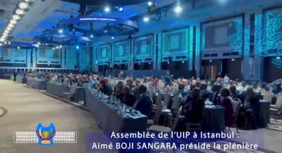 À Istanbul, en marge de la 152ᵉ Assemblée de l’Union interparlementaire, le Président de l’Assemblée nationale de la République Démocratique du Congo, l’Honorable Aimé BOJI SANGARE a présidé, samedi 18 avril 2026, une séance plénière dans le cadre du système de rotation de l’UIP.