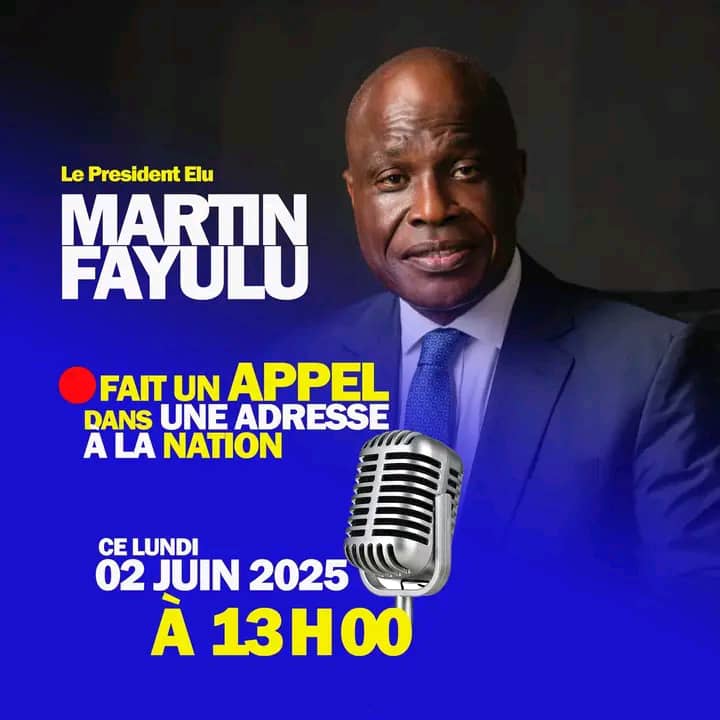 L’ancien candidat Président de la République Démocratique du Congo en 2018, Martin Fayulu Madidi alias Mafa s’adresse à la Nation ce Lundi 02 juin 2025. Cette prise de parole de Martin Fayulu qui s’estime être le président légitimement élu en 2018 mais non proclamé par la CENI survient dans un contexte politico-sécuritaire tendu en RDC, spécialement dans sa partie Est et après le discours de l’ancien Président et Sénateur à vie Joseph Kabila Kabange qui a décrié une  gouvernance chaotique entourée des plusieurs maux et dictatoriale ” qui caractérise le régime de kinshasa.